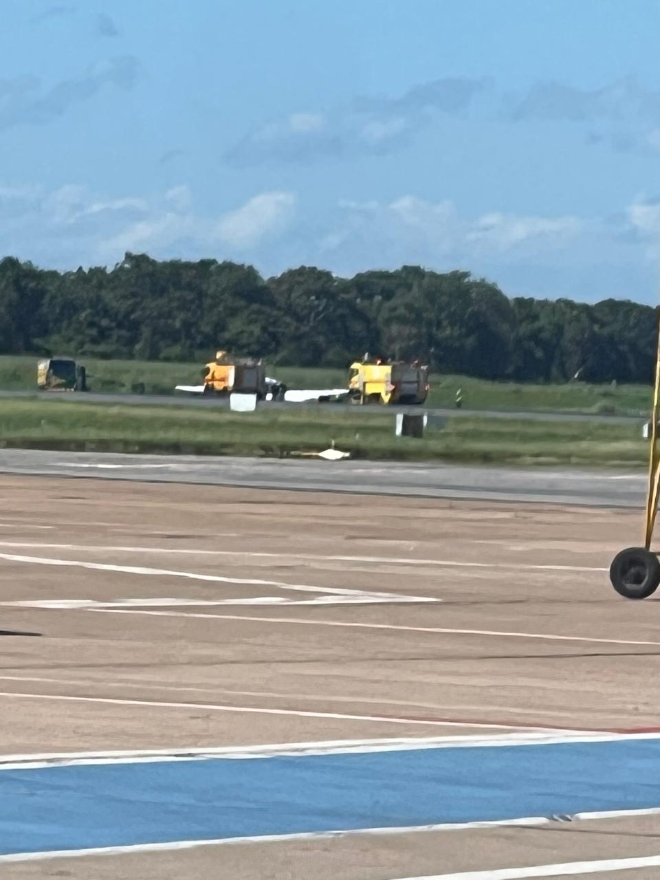 As informações iniciais são de que os problemas na pista do aeroporto aconteceram após o pneu de um avião de pequeno porte estourar.