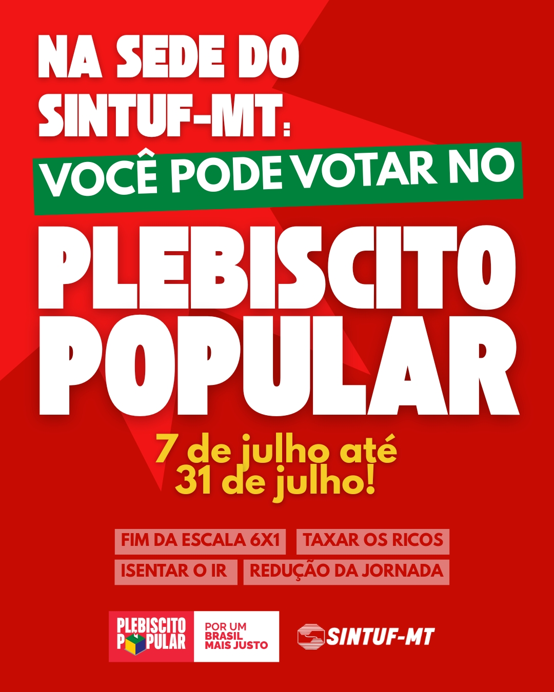 População poderá votar presencialmente até 31 de julho; proposta defende fim da escala 6×1 e isenção do imposto para quem ganha até R$ 5 mil.