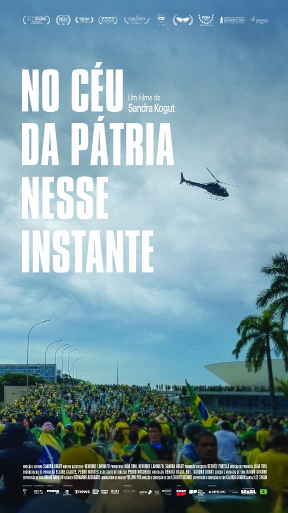 Produzido pela Ocean Films, em coprodução com Marola Filmes, Kiwi Filmes, GloboNews, Globo Filmes e Canal Brasil, com apoio do ProAC via Política Nacional Aldir Blanc, através da Secretaria da Cultura, Economia e Indústrias Criativas do Governo do Estado de São Paulo. O documentário é um retrato coletivo do Brasil em um dos momentos mais turbulentos de sua história recente. NO CÉU DA PÁTRIA NESSE INSTANTE estreia em 14 de agosto nos cinemas nacionais, com distribuição da 02 Play e da Lira Filmes.