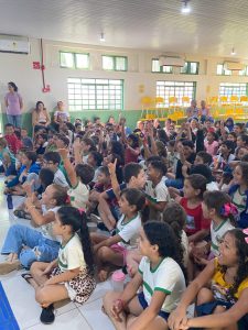 Além de receber o espetáculo, as escolas recebem um kit de livros de literatura infantil que mergulham na biodiversidade da Amazônia, despertando o encanto e o desejo de protegê-la.