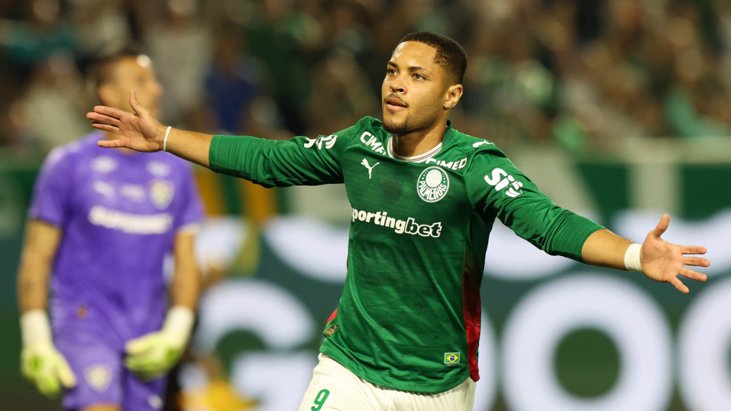 Vitor Roque, aos 8′ do 1°T (Palmeiras)