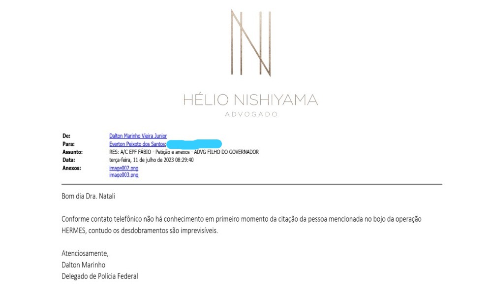 O questionamento do casal quanto à atuação da PF ocorre porque no dia 11 de julho, após a publicação da matéria do Jornal A Gazeta, que apontava Luís Mendes como investigado, o escritório de advocacia que patrocina a defesa da família enviou e-mail perguntando sobre as investigações. A resposta assinada pelo delegado da Polícia Federal, Dalton Marinho, é de que ‘em primeiro momento não’, mas os desdobramentos seriam imprevisíveis.