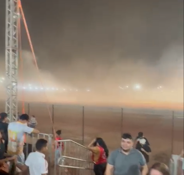 A cobertura de uma das arquibancadas desabou na última quinta e deixou três pessoas feridas levemente. Alguns veículos que estavam estacionados no local também foram danificados. A chamada fita catraca é uma ferramenta muito utilizada para fixar cargas em veículos de grande porte.